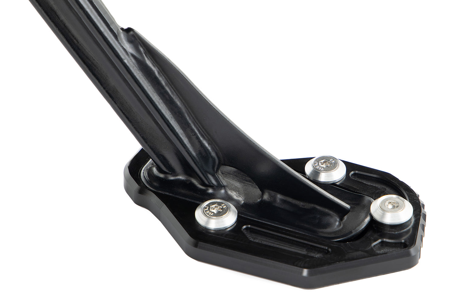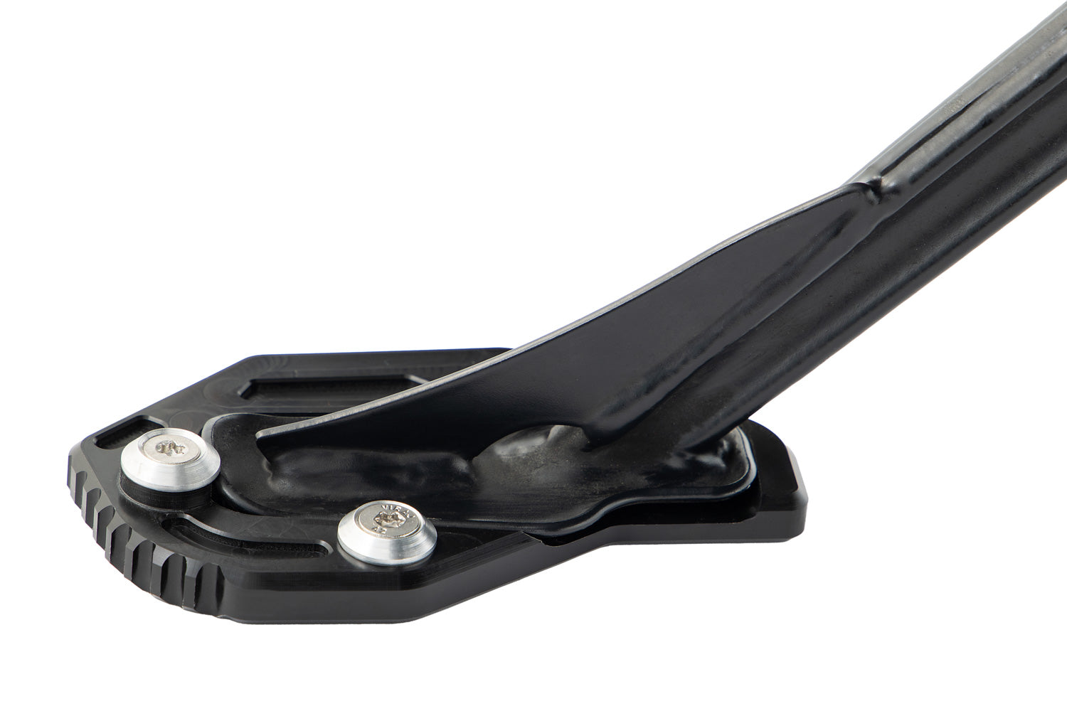 - The side stand extension plate ensures that your motorcycle stands securely on any terrain – even on hot asphalt or softened ground – especially when fully loaded