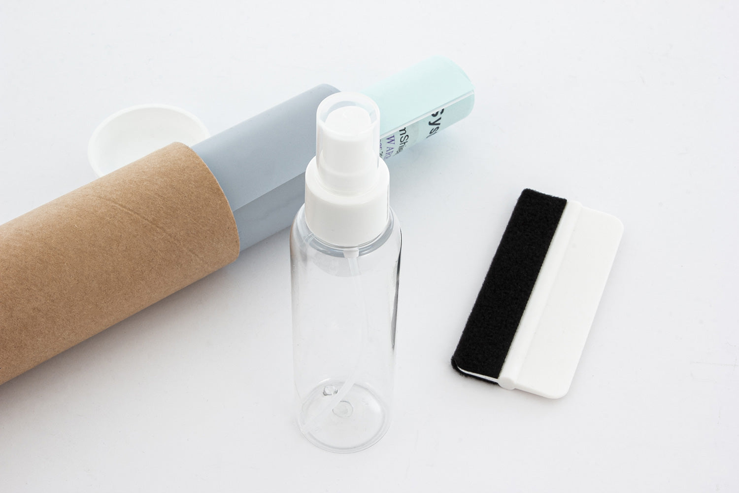 - Included in the set is a spray can, a squeegee and detailed assembly instructions.