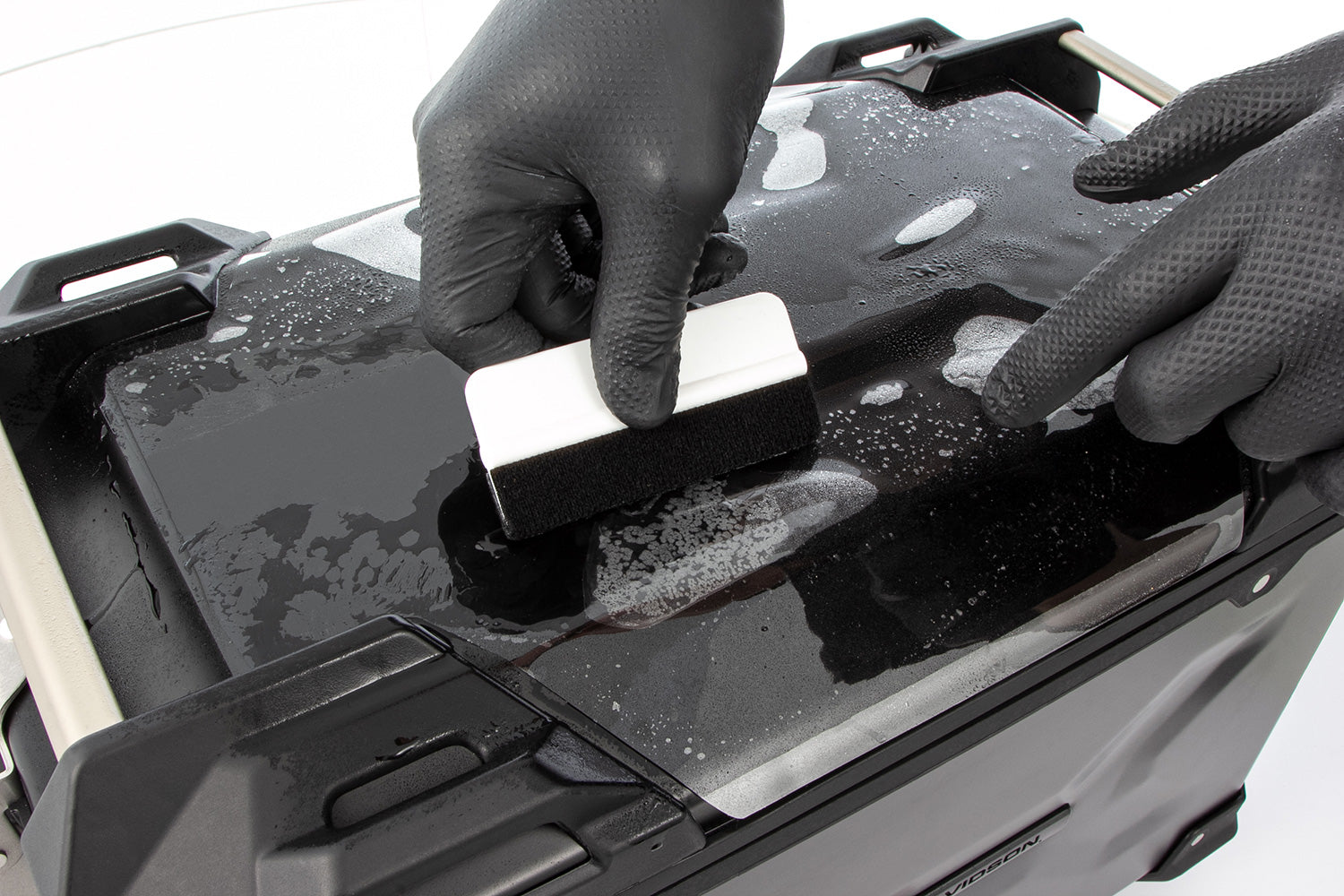 An almost indestructible, elastic and transparent protective foil which was originally developed for the aviation industry to protect the front edges of propellers and rotor blades (against stone chips). Naturally, if it can protect against almost sonic speed, it would be a first choice to preserve the value of your original Pan America top cases.