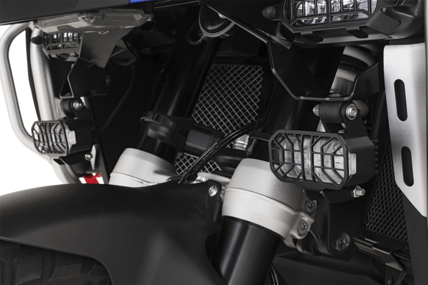 The Wunderlich MICROFLOOTER 3.0 auxiliary lights for the BMW R1300 GS Adventure impress with their compact design, low power consumption, extreme brightness, durability and distinctive light signature. Factory-equipped with foldable protective grilles.