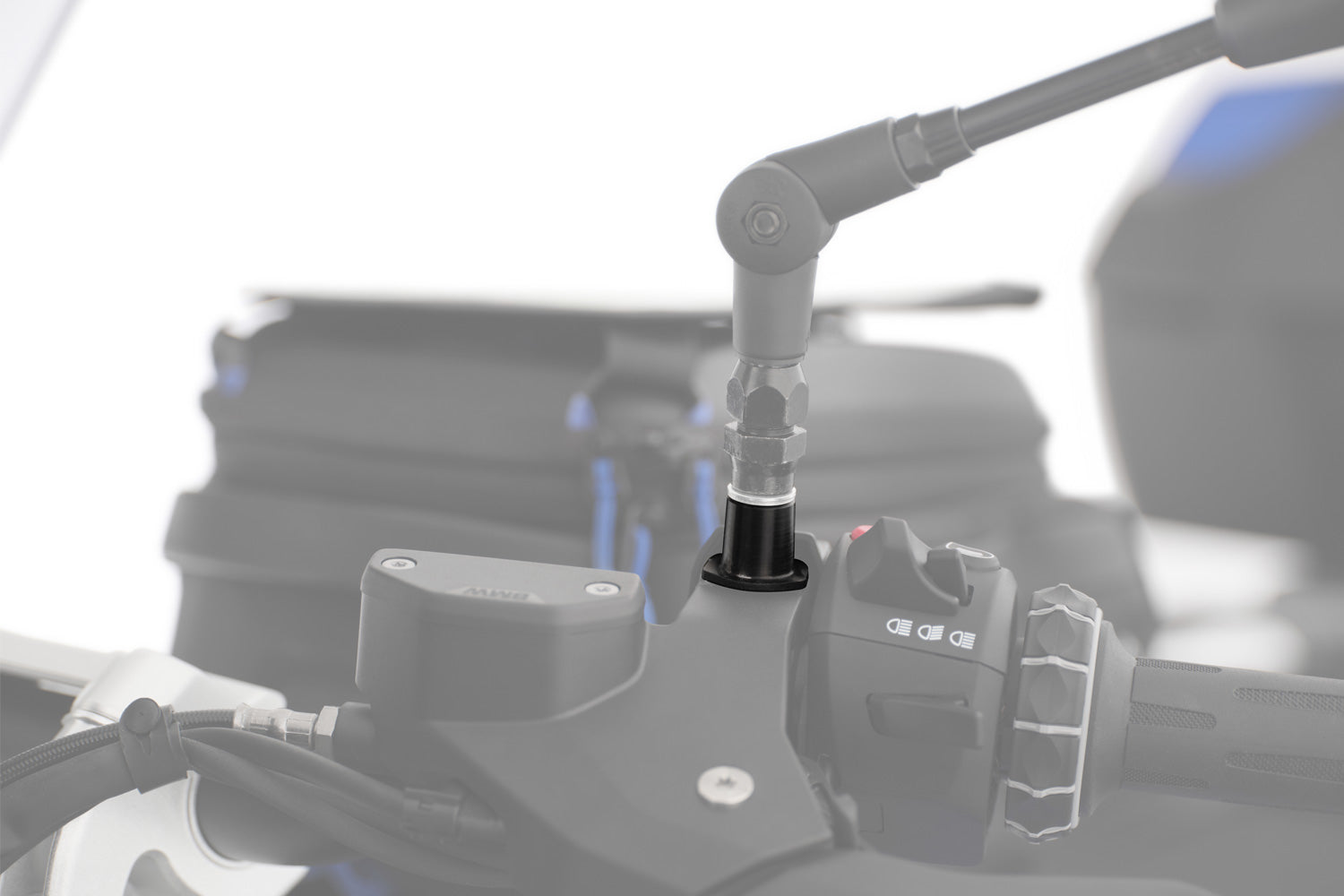 Set of two mounts for additional mirrors – as an enhancement to the low-positioned original rear-view mirrors of the BMW R1300 RT