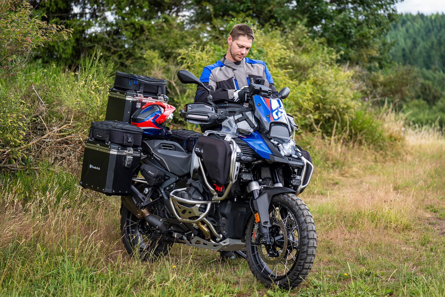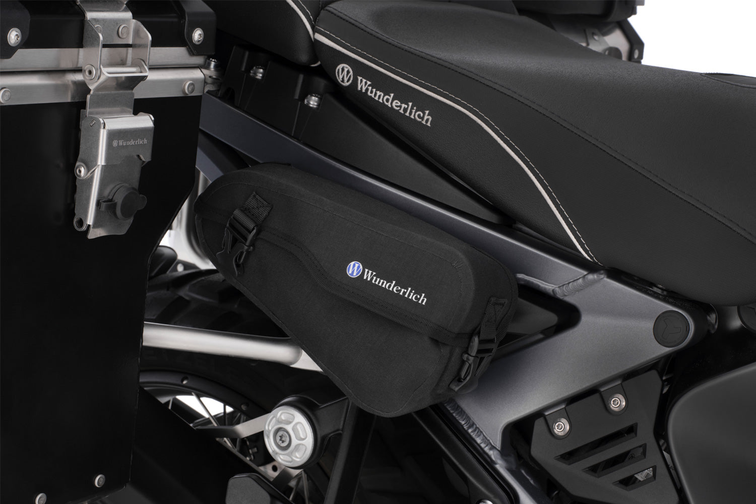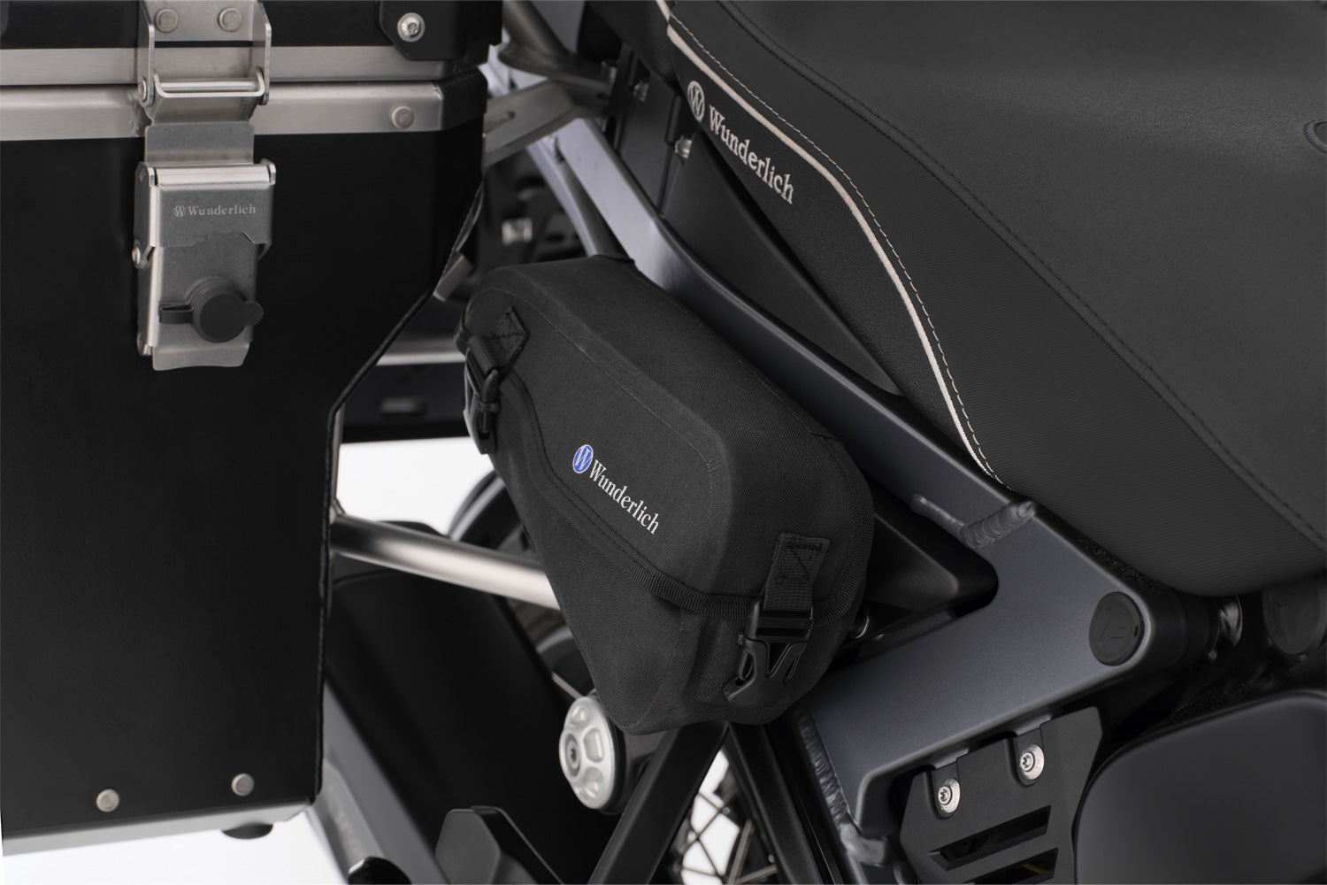 Minimalist. Waterproof. Secure. Made for the original frame panels of the Adventure: The Wunderlich DRYBAG side bags for the frame panels of the BMW R1300 GS Adventure