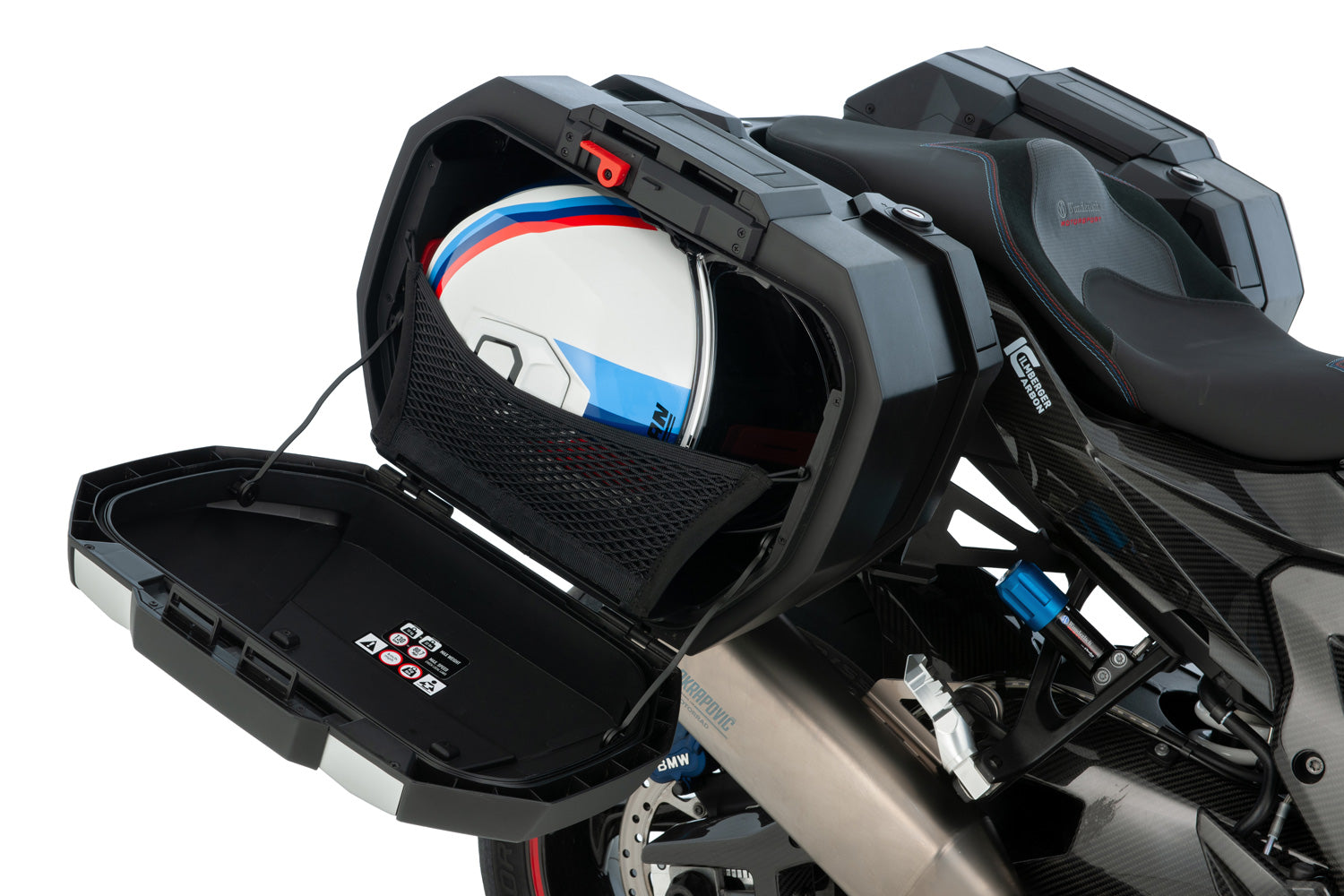 Exclusive for the BMW M1000 XR: The Wunderlich X-CASE X30 Carbon panniers as a set with the X-RACK light carrier transform the M1000 XR into the most capable touring motorcycle in the world